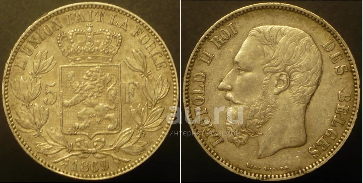 5 франков 1869 г Бельгия