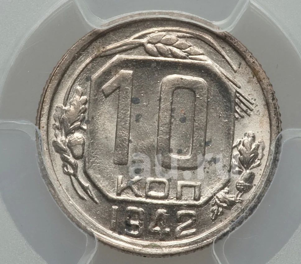 Редкая монета СССР погодовка 10копеек 1942 года в слабе американской грейдинговой компании