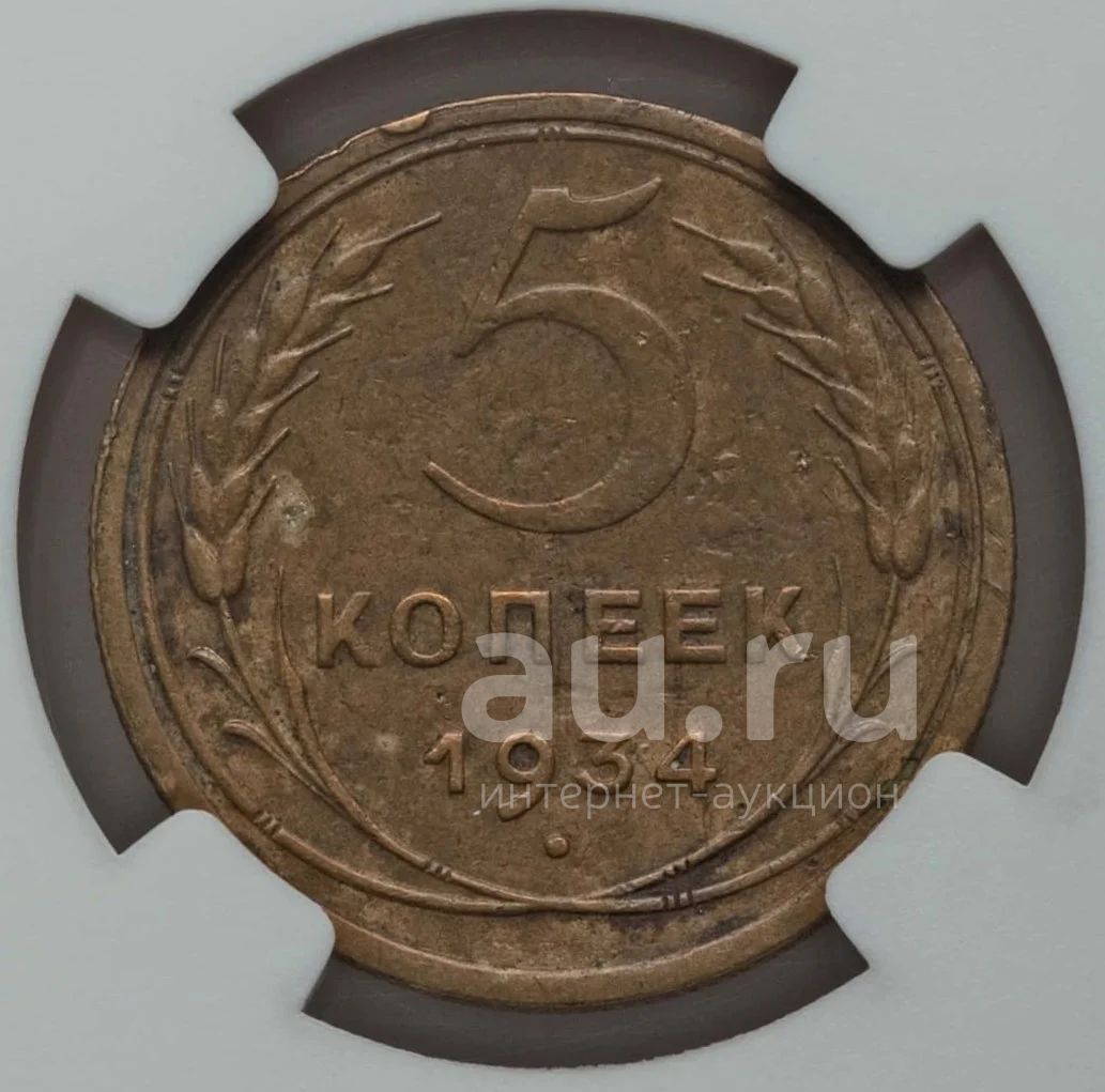 Редкая монета СССР погодовка 5 копеек 1934 года в слабе американской грейдинговой компании